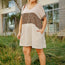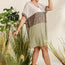 Imported XL.1XL.2XL Linen Blend Short Folded Sleeve Animal Print Colorblocked V-Neck Dress with Pockets 55% Linen 45% Cotton Oatmeal Mix UMG