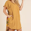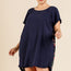 Imported XL.1XL.2XL. Short Sleeve Round Neck Dress with Floral Print Back and High Low Scoop Ruffle Hem 55% Linen 45% Cotton Navy UMG