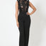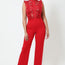 ImportedS.M.LCrochet Lace Combined Bodice JumpsuitMock Neck W/ Crochet Details, Crochet Lace SleevelessFrontline Flared Leg Design Zipper on the Back 95% Polyester 5% Spandex Red VAL