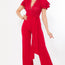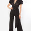 Imported S.M.L Deep V Crochet Lace Jumpsuit. Belt Loops with Self fabric belt on Waist.Cap Sleeves, Zipper on Back 95% Polyester 5% Spandex Black VAL